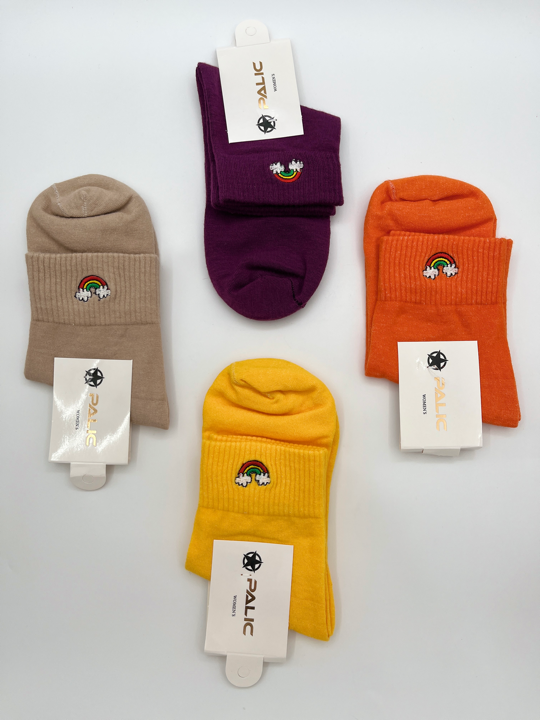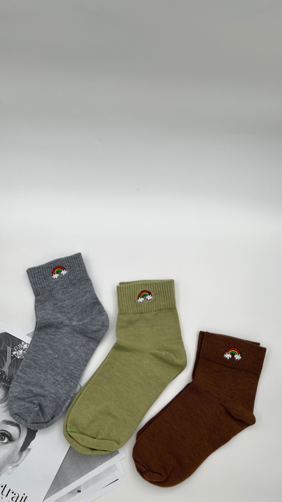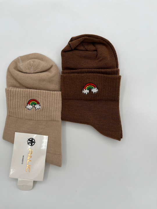 جوراب نیم ساق با گلدوزی رنگین کمان