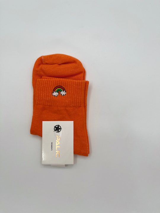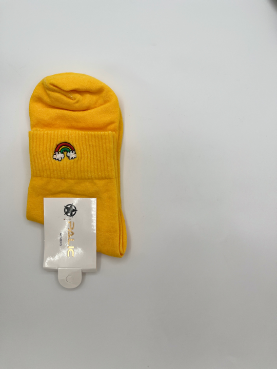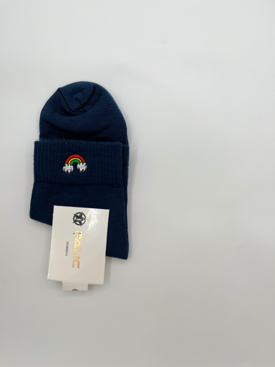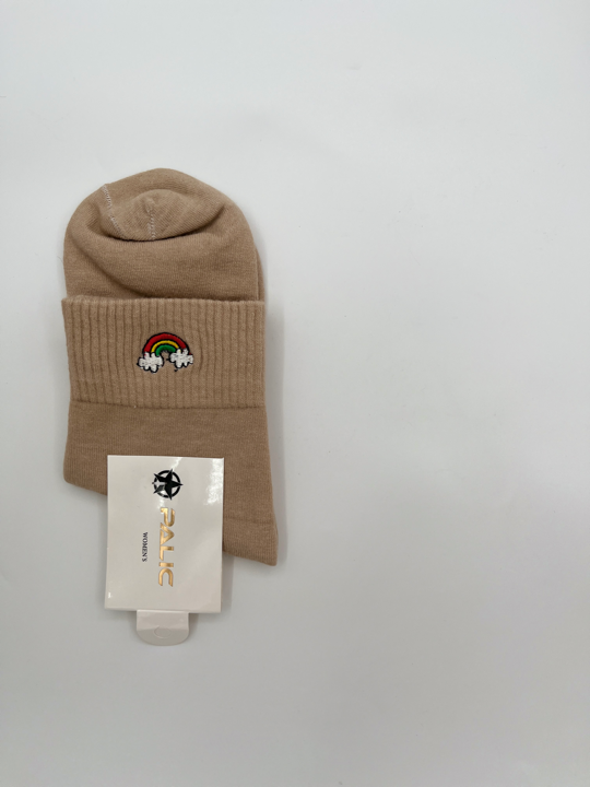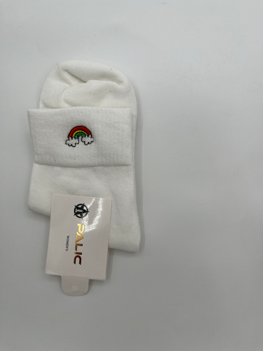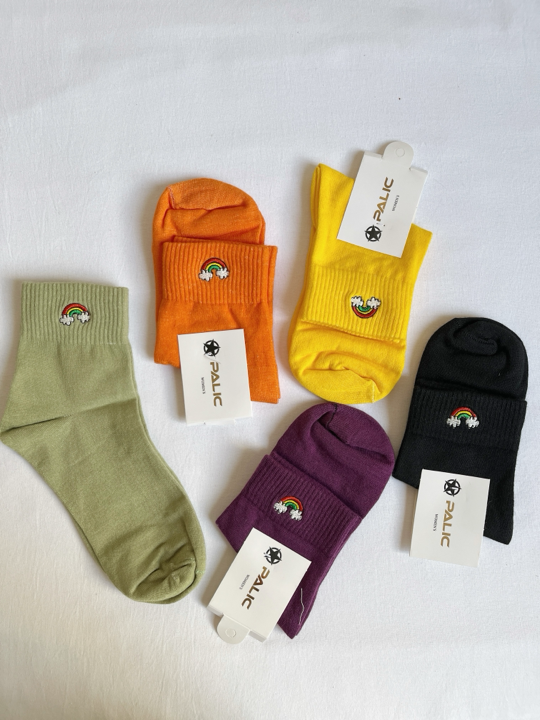 اگه دلت نه جوراب ساق کوتاه میخواد نه ساق بلند، این جوراب متعلق به توعه! چون دقیقا بین این دوتاست و نیم ساقه. علاوه برااین یه گلدوزی کیوت رنگین کمون هم داره که نه خیلی شلوغش کرده، و نه زیادی سادهست!